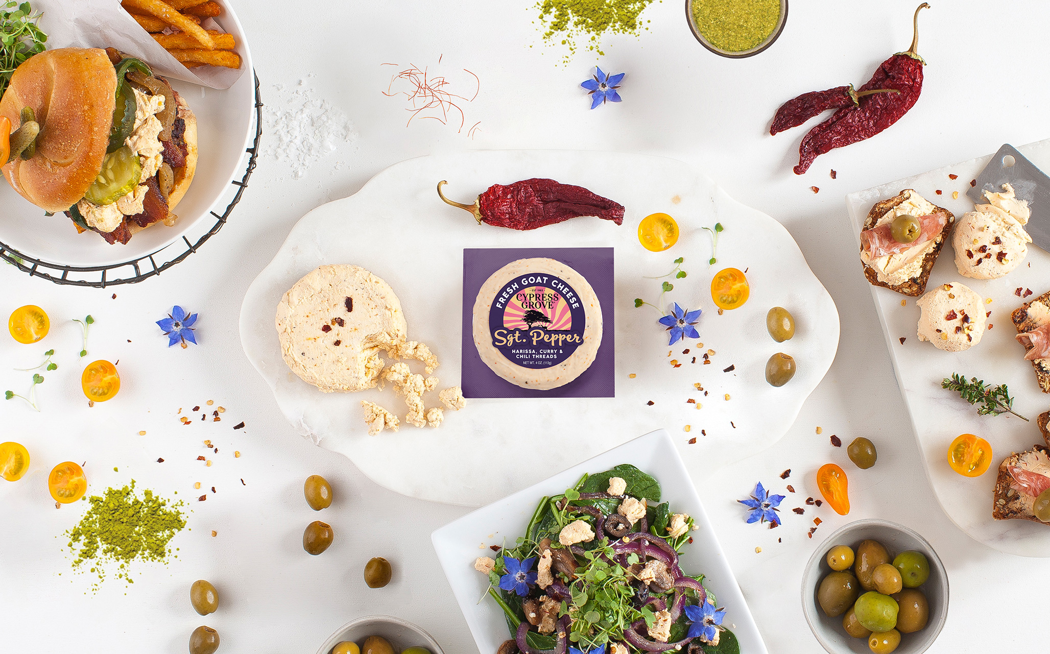 Sgt. Pepper® is a fresh & spicy goat cheese with a secret combination of four peppers, exotic spices, and pepper threads that results in a complex taste experience — with a slight kick in the pants. Whether you use it in a recipe, as an easy appetizer or just as a spread, you're sure to enjoy this creamy, delicious and spicy goat cheese. We use the finest ingredients we can get our hands on and always start with the highest quality milk — the building block for our entire line of cheese.
